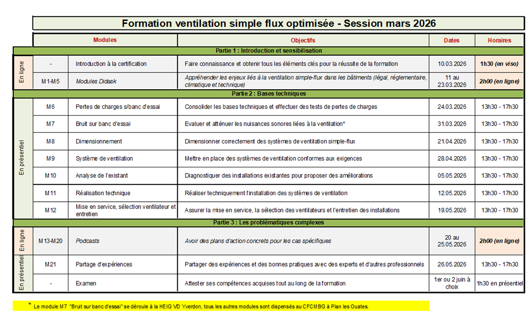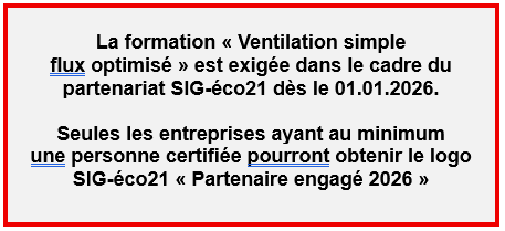 Les personnes qui suivront l'intégralité des modules pourront passer la certification ventilation simple-flux optimisée